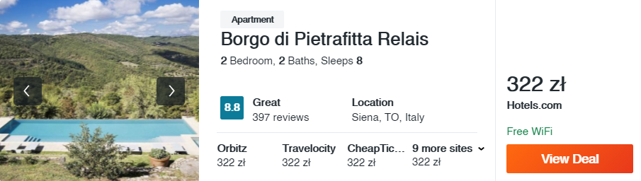 Dowiedzcie się więcej o tym hoteluTo się nazywa prawdziwy toskański klimat! W przepięknej miejscowości Siena na swoje zakwaterowanie wybierzcie obiekt Borgo di Pietrafitta Relais. Miejsce to wyróżnia się nie tylko niesamowitymi, klimatycznymi wnętrzami, ale też malowniczym krajobrazem i… basenem z bajkowym widokiem 😊!