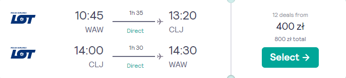 W podróż do Kluż Napoki wyruszycie w terminie 8 – 15 listopada. Czeka was bezpośredni lot z Warszawy, a bilety w okazyjnych cenach kupicie w ramach trwającej aktualnie w PLL LOT promocji.