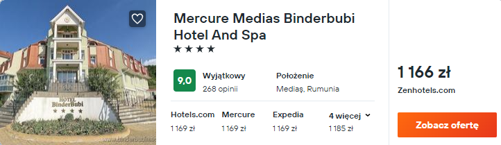 Jako bazę wypadową proponuję wybrać bardzo dobrze oceniany 4* hotel Mercure Medias Binderbubi Hotel And Spa. Będzie to świetne miejsce na wypoczynek po dniu pełnym atrakcji.