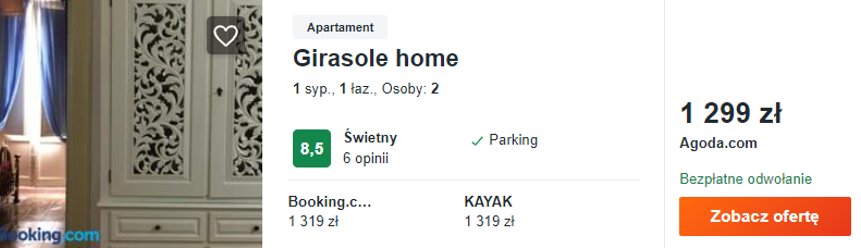 Wybrałem dla was noclegi w apartamencie Girasole home. Będzie to dobra baza wypadowa zarówno do odkrywania uroków zabytkowego starego miasta, jak i na pobliskie plaże.