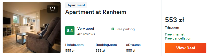 Za loty w obie strony oraz zakwaterowanie zapłacisz 454 PLN za osobę, przy 4 podróżnych śpiących w jednym apartamencie.
