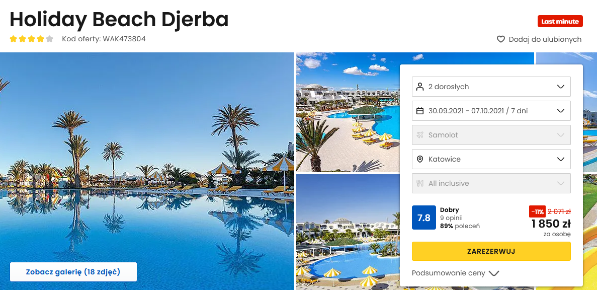 Słońce, wysokie temperatury i beztroski relaks w 4* hotelu z all inclusive – czyż nie brzmi to wybornie jako alternatywa dla jesiennej aury, która zawitała do naszego kraju? Nie zastanawiajcie się dwa razy i zarezerwujcie dla siebie wczasy last minute na Djerbie – tak, by w październiku móc pochwalić się złotą opalenizną!