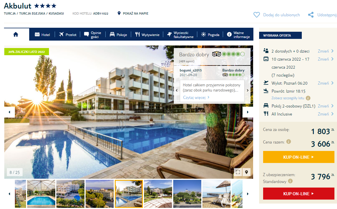 Na wczasy do Turcji udacie się w terminie 10 – 17 czerwca. Czeka was bezpośredni lot do Izmiru, a jako miejsca wylotu do wyboru macie Katowice, Poznań, Wrocław oraz Warszawę. Na Riwierę Turecką polecicie bezpośrednio na pokładzie samolotu linii lotniczej Enter Air z wliczonym bagażem rejestrowanym.