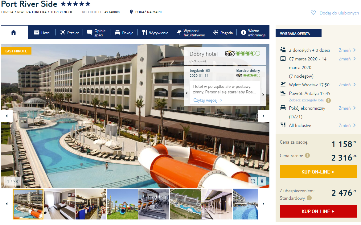 Wyloty do Turcji realizowane są m.in. z Warszawy, Katowic, Gdańska, Poznania oraz Wrocławia. Coś o hotelu? Ten bardzo dobrze oceniany 5* obiekt, otwarty w 2015 roku, zlokalizowany jest niedaleko plaży. Spragnieni relaksu odnajdą go w specjalnej strefie, gdzie napotkają m.in. salę fitness, kryty basen i jacuzzi. W hotelu działa również miniklub dla najmłodszych.