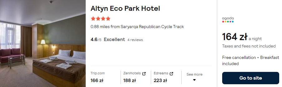 Aklimatyzację w Azji rozpocznij od pobytu w 4* hotelu Altyn Eco Park. Na dobry początek dnia otrzymasz tam pyszne śniadanie wliczone w cenę zakwaterowania.