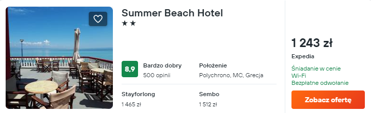 Zatrzymaj się w bardzo dobrze ocenianym hotelu Summer Beach. Znajduje się on tuż nad morzem, a na dobry początek dnia otrzymasz tam pyszne śniadanie wliczone w cenę noclegów.