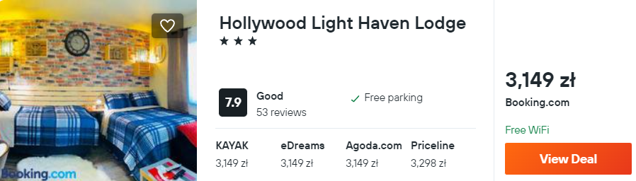 Na Florydzie proponuję zakwaterowanie w pensjonacie Light Haven Lodge, który znajduje się w miejscowości Hollywood. Z lotniska Fort Lauderdale w okolice miejsca noclegowego dojedziesz autobusem lub wypożyczonym samochodem – szczegóły poniżej.