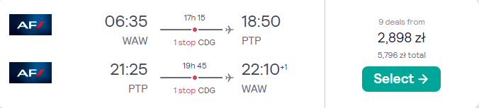 Na Karaiby udacie się w terminie 18 – 25 listopada. Czekają was loty z Warszawy do Pointe-à-Pitre, realizowane na pokładzie samolotów linii lotniczej Air France. Po drodze zaplanowano bezpieczne, gwarantowane przez przewoźnika przesiadki w Paryżu.