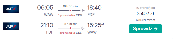 Na Karaiby udasz się w terminie 14 – 21 czerwca. Do Pointe-à-Pitre polecisz z Warszawy na pokładzie samolotów linii lotniczej Air France. Po drodze zaplanowano bezpieczne, gwarantowane przez przewoźnika przesiadki w Paryżu.