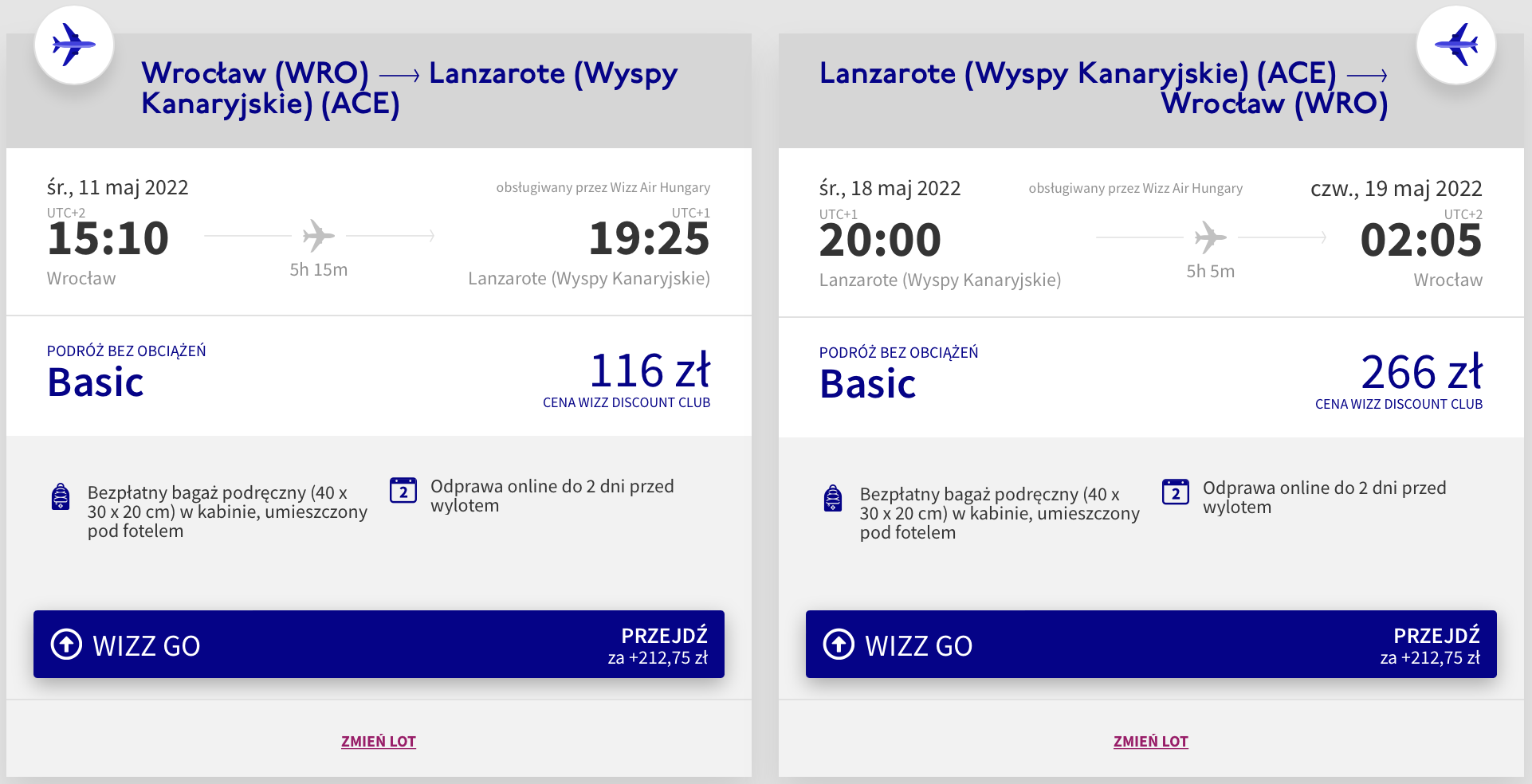 Do Hiszpanii wybierzecie się w dniach 11-18 maja. Podróż do Arrecife rozpoczniecie i zakończycie we wrocławskim porcie lotniczym im. Mikołaja Kopernika. W obie strony polecicie bezpośrednio na pokładach samolotów linii Wizz Air z wliczonym małym bagażem podręcznym.