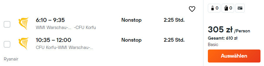 Do Grecji udasz się z warszawskiego lotniska w Modlinie w 12-19 kwietnia. W obie strony polecisz bezpośrednio na pokładzie samolotu linii Ryanair. Bez dodatkowych kosztów zabrać ze sobą możesz wyłącznie mały bagaż podręczny.