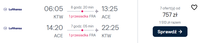 Na hiszpańską wyspę udasz się z portu lotniczego Katowice-Pyrzowice w grudniu W obie strony podróżować będziesz linią Lufthansa, z wygodną przesiadką we Frankfurcie. W cenie zabrać ze sobą możesz bagaż podręczny oraz przedmiot osobisty.