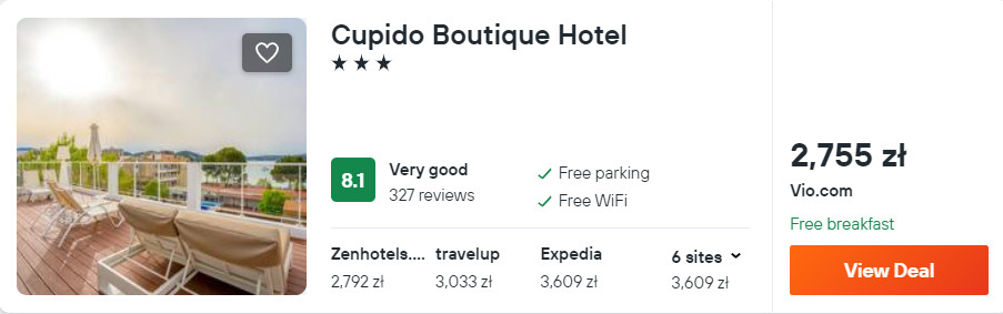 Za pakiet lotów oraz noclegów zapłacisz 1656 PLN za osobę, pod warunkiem że będziesz podróżować w parze i zatrzymacie się w tym samym pokoju.