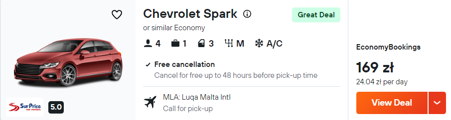 W trakcie wyjazdu masz zamiar także coś zobaczyć? W takim razie rozważ wypożyczenie samochodu na cały pobyt. Poza sezonem ceny wynajmu zaczynają się już od 24 PLN/doba.