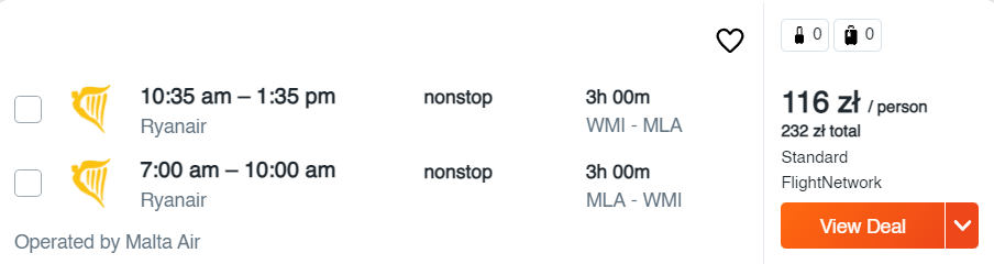 Na Maltę udacie się pod koniec zimy, w terminie 24 – 31 marca z warszawskiego lotniska w Modlinie. W obie strony podróżować będziecie na pokładach samolotów linii Ryanair z wliczonym małym bagażem podręcznym.