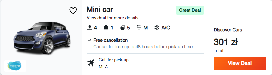 Wyspa Malta od 2790 PLN na 7 dni (lotnisko wylotu: Warszawa - Modlin)