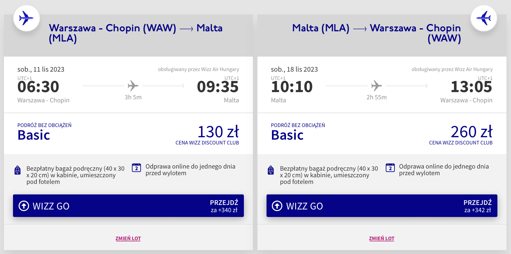 Wycieczka na Maltę odbędzie się w dniach 11-18 listopada. W obie strony polecisz z Warszawy na pokładzie samolotów linii Wizz Air, z wliczonym małym bagażem podręcznym. Bilety w najniższej cenie dostępne są dla członków Wizz Discount Club.