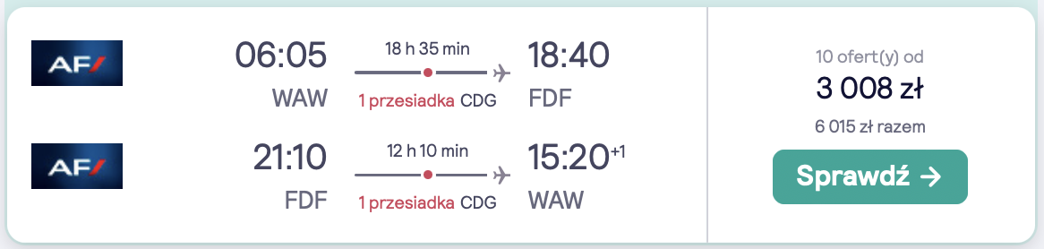 W podróż udasz się w terminie 26 maja – 2 czerwca. Czekają cię loty z Warszawy, realizowane na pokładzie samolotów linii lotniczej Air France. Po drodze zaplanowano bezpieczne, gwarantowane przez przewoźnika przesiadki w Paryżu (7,5 i 1,5h).