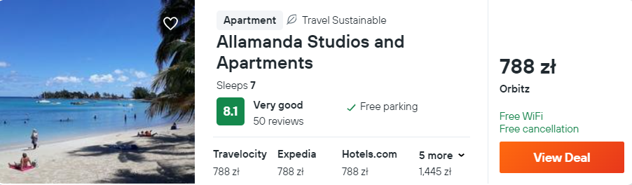 Za loty w obie strony oraz zakwaterowanie 3237 PLN za osobę przy 2 podróżnych śpiących w jednym pokoju.