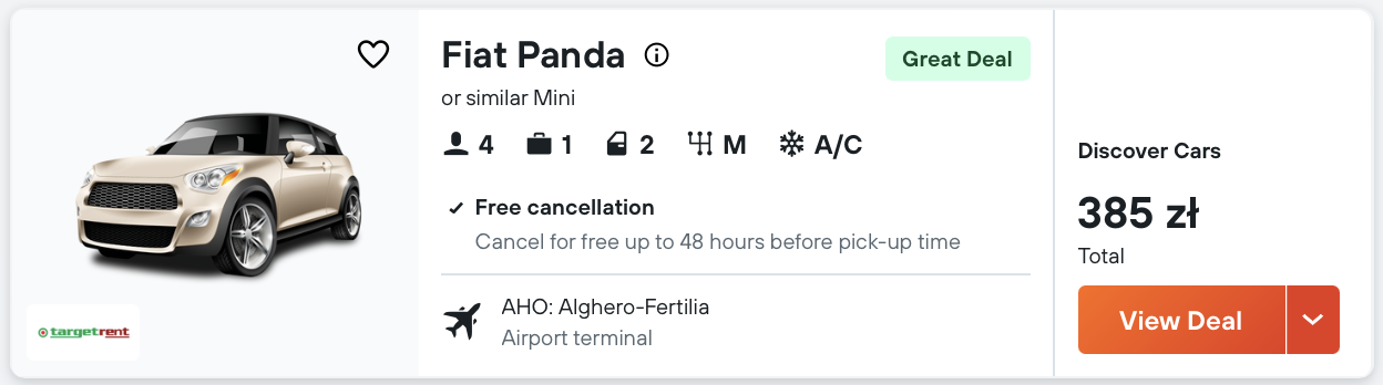 Jeśli chcecie zobaczyć wszystkie atrakcje na Sardynii, wypożyczcie samochód już na lotnisku w Alghero.