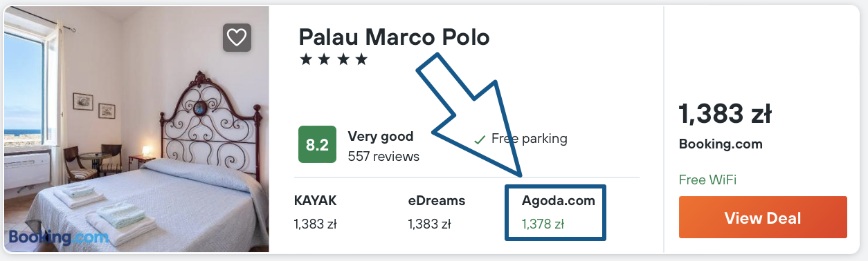 W Alghero rekomenduję zakwaterowanie w hotelu Palau Marco Polo. Aby uzyskać najniższą cenę, wybierzcie pośrednika Agoda.com.