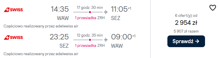 Do Afryki udasz się w terminie 25(26) stycznia-2(3) lutego 2025 r. z lotniska im. Fryderyka Chopina w Warszawie. Na Seszele polecisz liniami SWISS z przesiadkami w Zurychu. W cenę biletu wliczony jest bagaż podręczny oraz przedmiot osobisty.