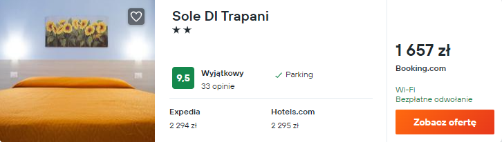 Za loty oraz tygodniowe zakwaterowanie na Sycylii zapłacicie 1053 PLN za osobę, przy 2 podróżnych śpiących w jednym pokoju.