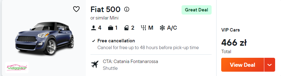 Jeżeli macie ochotę zwiedzić większą część wyspy, to polecam wam wypożyczyć samochód już na lotnisku w Katanii.