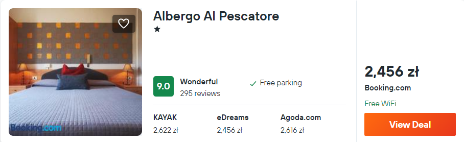 We Włoszech polecam zakwaterowanie w hotelu Albergo Al Pescatore. Obiekt został znakomicie oceniony przez dotychczasowych gości. Znajduje się on bezpośrednio nad jeziorem.