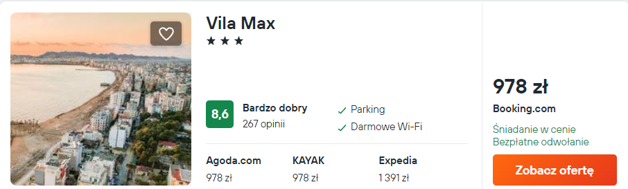 Zakwaterowanie: hotel ze śniadaniami