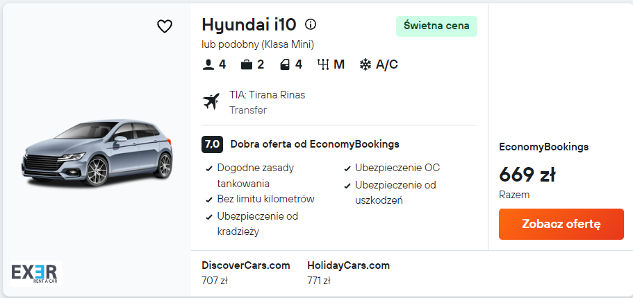 Samochód 669 PLN/2 osoby