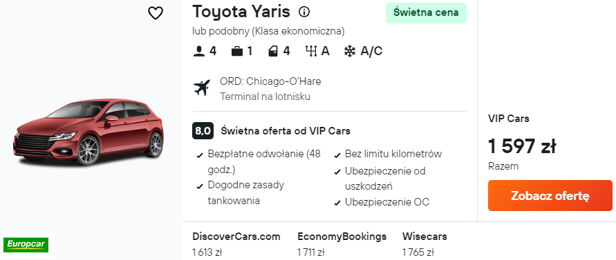 Chętnie zobaczy coś więcej niż Chicago? W takim razie wypożycz samochód zaraz po przylocie i ruszaj odkrywać atrakcje okolicy.