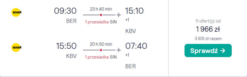 Z miłą chęcią proponuję wam wyjazd do Tajlandii, do której udacie się w terminie 20-28 marca (przyszłego roku). Podróż rozpoczniecie i zakończycie w porcie lotniczym Berlin Brandenburg. W obie strony polecicie na pokładach samolotów linii Scoot z wygodnymi przesiadkami w Singapurze. Bez dodatkowych kosztów na wycieczkę wybierzecie się z dwiema sztukami bagażu podręcznego o wymiarach: 54 x 38 x 23 cm oraz 40 x 30 x 10cm.