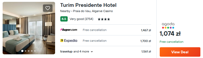 W Portimão zatrzymaj się w bardzo dobrze ocenianym 4* hotelu Turim Presidente. Obiekt oferuje swoim gościom między innymi room service oraz dostęp do restauracji i baru.