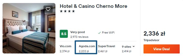 W Bułgarii wybrałem zakwaterowanie w 4* Hotel & Casino Cherno More. Obiekt cieszy się bardzo dobrymi opiniami dotychczasowych gości, dodatkowo w cenę pobytu wliczono codzienne śniadania.