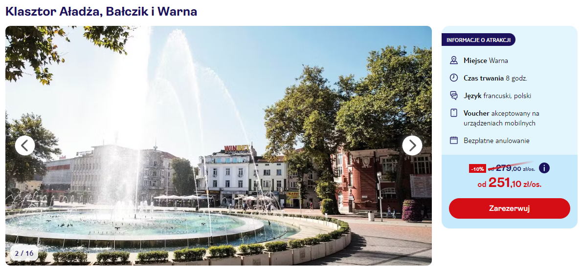 Na miejscu wybierz się na wycieczkę, w trakcie której zobaczysz dwie główne atrakcje na wybrzeżu Morza Czarnego – były królewski pałac w Bałcziku oraz wykuty w skale średniowieczny klasztor Aładża.