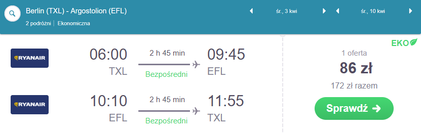Loty z Berlina na Kefalinię (3-10 kwietnia) za 172 PLN / 2 osoby (86 PLN / osoba)