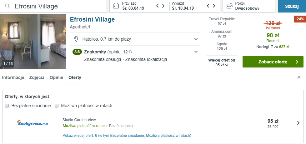 Zakwaterowanie w Efrosini Village za 662 PLN / 2 osoby / 7 nocy (331 PLN / osoba)