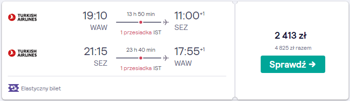 Polecicie na pokładzie 4* linii Turkish Airlines. W drodze na Seszele czeka was przesiadka w Stambule (nieco ponad 3 godziny), natomiast w drodze powrotnej zatrzymacie się nad Bosforem na niespełna 13 godzin – możecie ten czas wykorzystać na szybkie zwiedzanie miasta. Linia lotnicza jest bardzo dobrze oceniana przez naszych czytelników: słynie z nowoczesnej floty i rozbudowanego systemu rozrywki pokładowej. Podczas podróży bez dodatkowych opłat otrzymacie ciepłe posiłki oraz napoje.