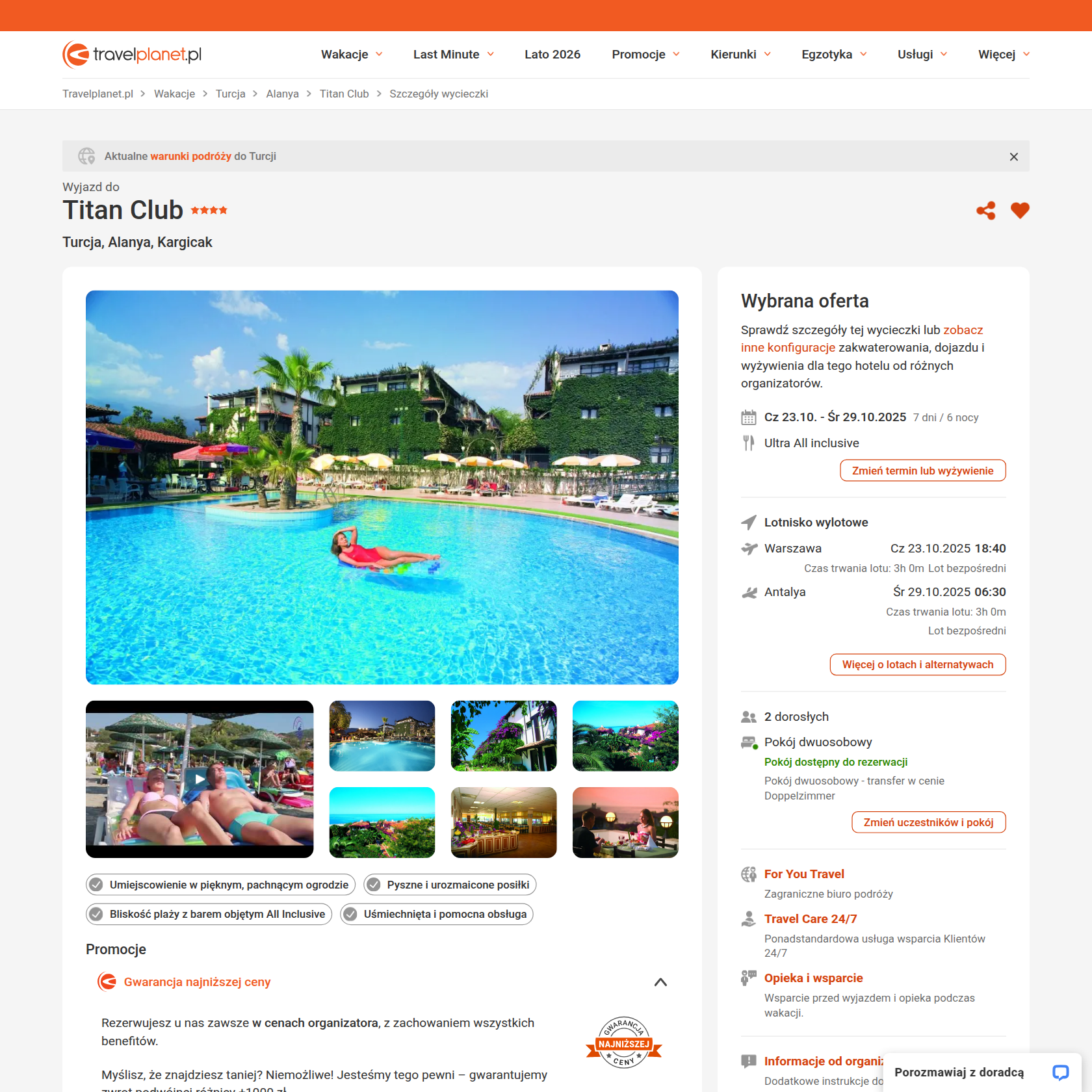 Wylot z Warszawy zaplanowany jest na 23 października, a powrót na 29 października. Podróż odbywa się liniami SunExpress, które zapewnią wygodny przelot do słonecznej Turcji.