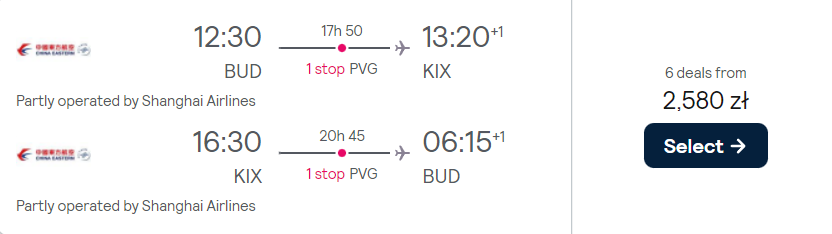 Do Azji udasz się w terminie 26 maja – 3 czerwca. Czekają cię loty z Budapesztu, realizowane na pokładzie samolotów China Eastern Airlines. W cenę biletów wliczono bagaż podręczny i rejestrowany, a po drodze zaplanowano bezpieczne, gwarantowane przez przewoźnika przesiadki w Szanghaju.