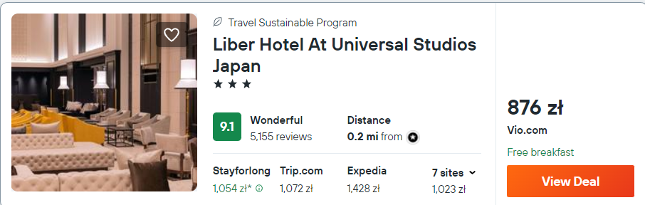 Za loty w dwie strony oraz bilet wstępu do Universal Studios zapłacisz 2849 PLN za osobę.