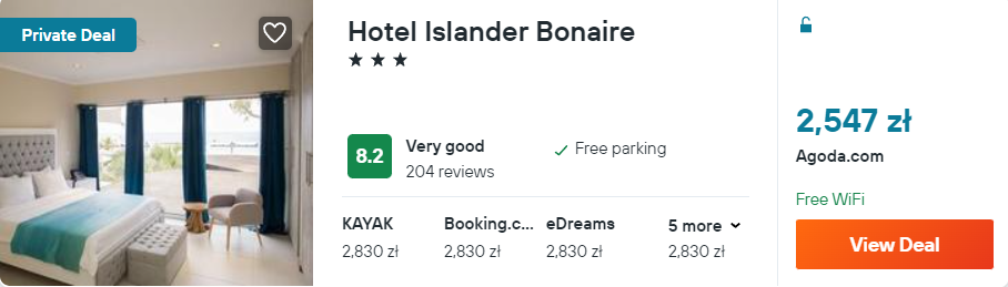 Tygodniowa wycieczka na Bonaire kosztować was będzie 4399 PLN za osobę, przy 2 podróżnych śpiących w jednym pokoju.