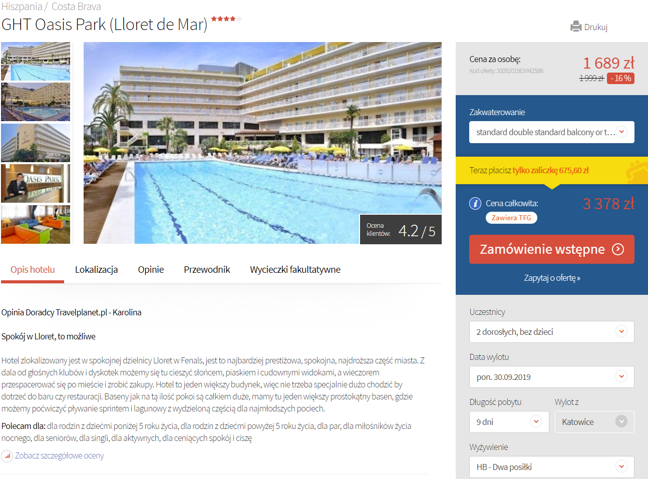 9 dni na Costa Brava: 4* hotel z HB za 1689 PLN. Wylot z Katowic