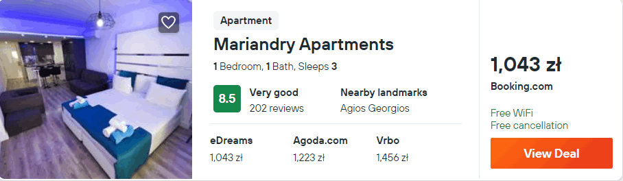 Za loty w dwie strony oraz zakwaterowanie zapłacicie tylko 647 PLN za osobę, przy 2 podróżnych zatrzymujących się w jednym miejscu.