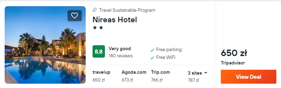 Na Krecie wybrałem noclegi w bardzo dobrze ocenianym hotelu Nireas. Z lotniska w Chanii w okolice miejsca zakwaterowania dostaniesz się taksówką lub wynajętym samochodem.