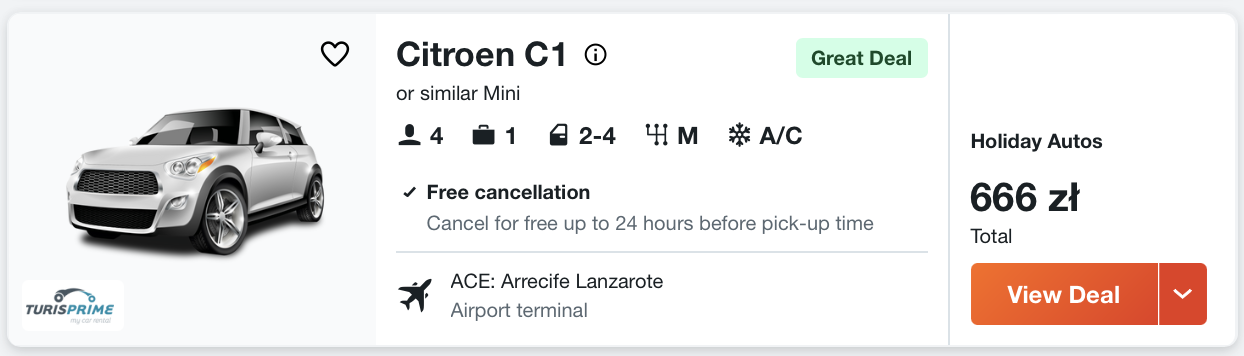 Piękna plaża Papagayo, punkt widokowy Mirador del Río czy Park Narodowy Timanfaya – do każdego z tych miejsc szybko i wygodnie dojedziecie autem, dlatego zachęcam was do wypożyczenia samochodu zaraz po przylocie na wyspę.