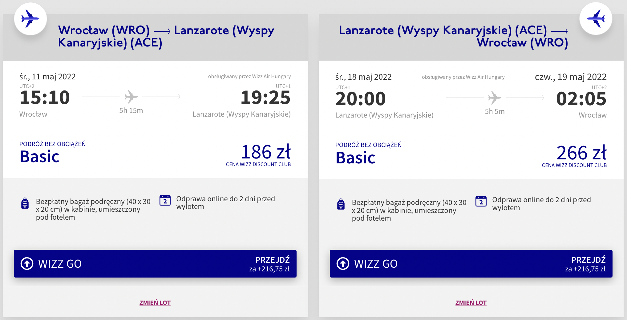 Na hiszpańską wyspę udacie się w terminie 11-18 maja. Podróż na Lanzarote rozpoczniecie i zakończycie we wrocławskim porcie lotniczym im. Mikołaja Kopernika. W obie strony polecicie bezpośrednio na pokładach samolotów linii Wizz Air z wliczonym małym bagażem podręcznym.