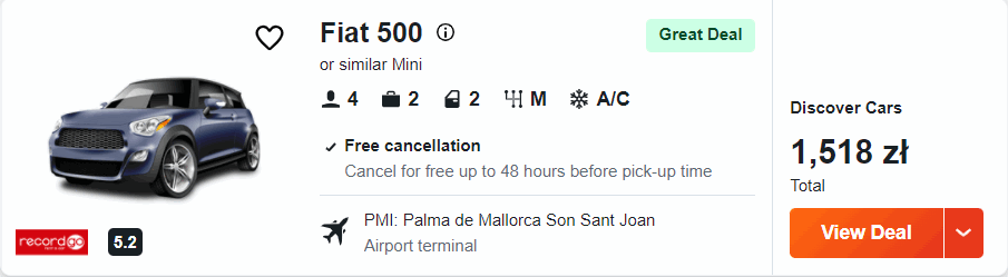 Macie w planach także coś zobaczyć? W takim razie zdecydujcie się wynająć samochód zaraz po przylocie na Majorkę. Mając do swojej dyspozycji auto, dojedzcie szybko i wygodnie w różne rejony wyspy