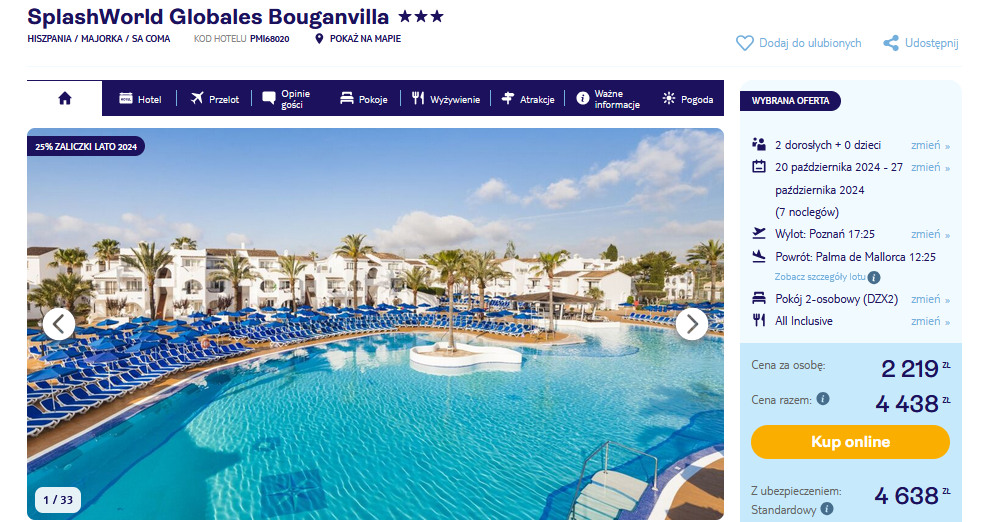 Urlop na Majorce: 7 dni w hotelu z all inclusive od 2219 PLN. Wyloty z 3 miast